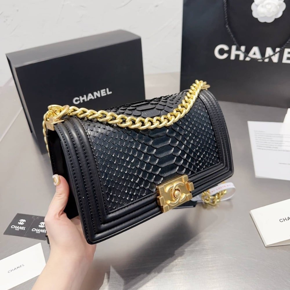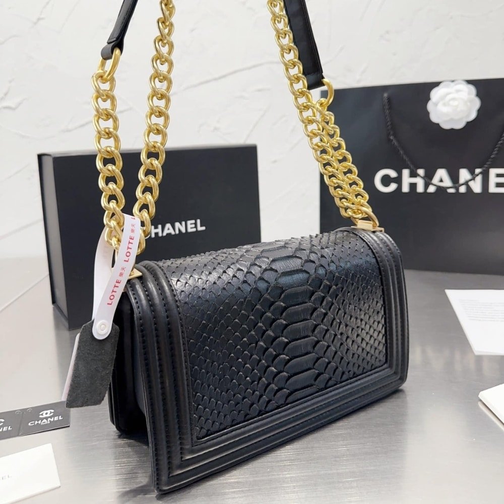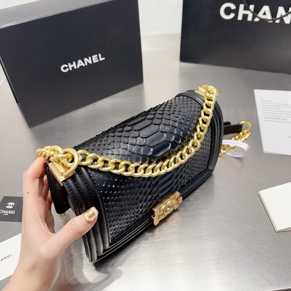 Chanel Boy Flap Bag Snake Leather Black 25Cm