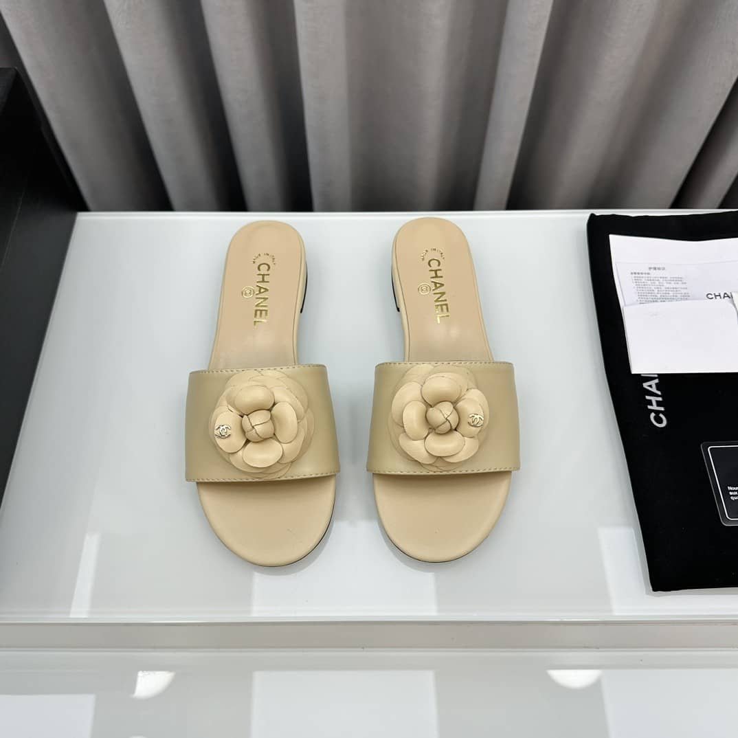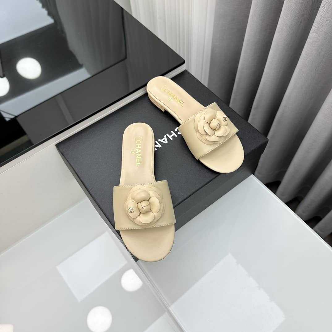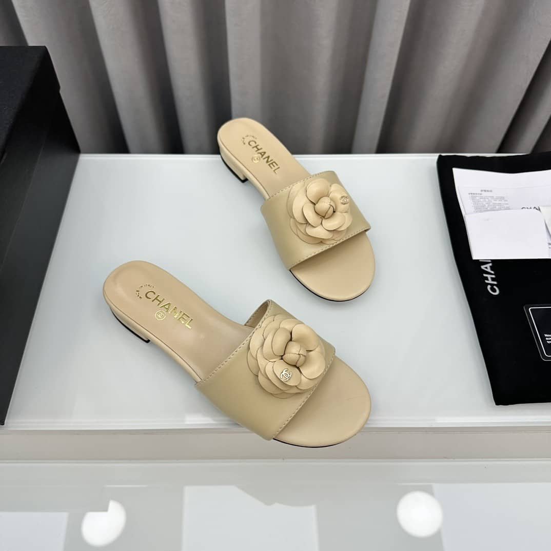 The Chanel Camellia Slides in Beige embody timeless femininity with the Maison’s iconic flower as a graceful centerpiece. Their sleek silhouette and refined charm exude effortless elegance, making them the perfect expression of chic comfort and elevated prestige.