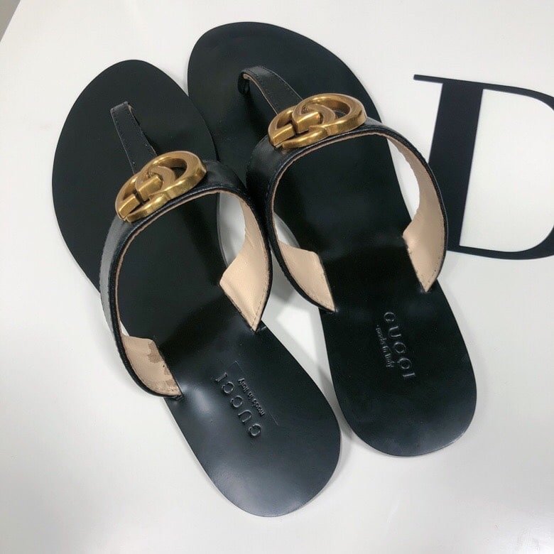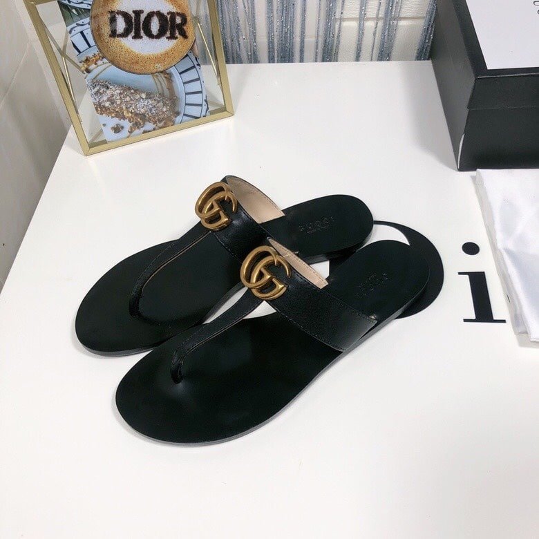 Gucci Double G Thong Leather Black 497444 A3N00 1000