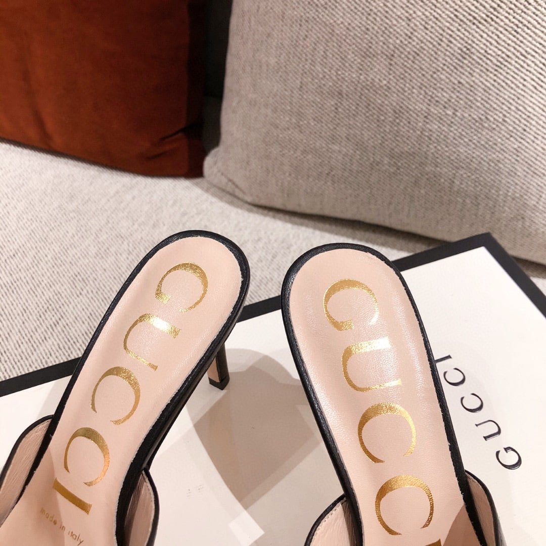 The Gucci Sylvie Chain Mule Sandals in black exude timeless sophistication, defined by sleek lines and the Maison’s iconic chain detail. A seamless blend of elegance and comfort, they elevate every step with an aura of modern prestige and refined luxury.