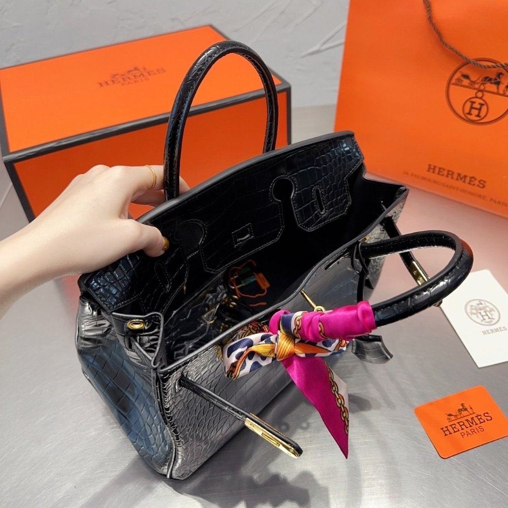 Hermes Birkin 30 Shiny Porosus Crocodile Black 30Cm