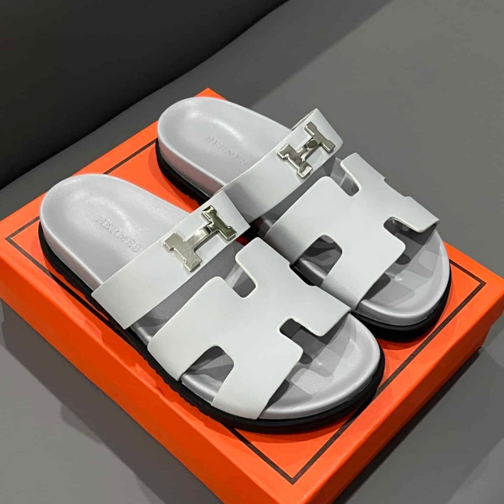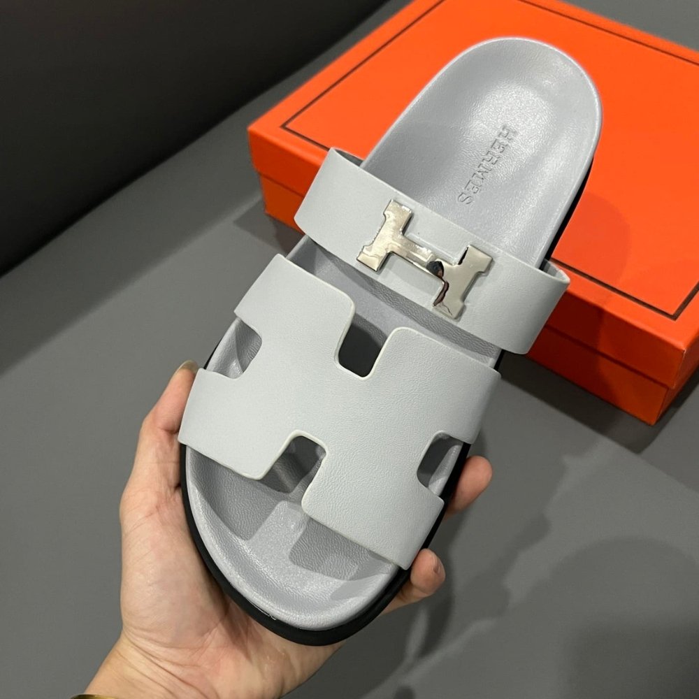 Hermes Chypre Sandal H Logo Silver Hardware Light Grey