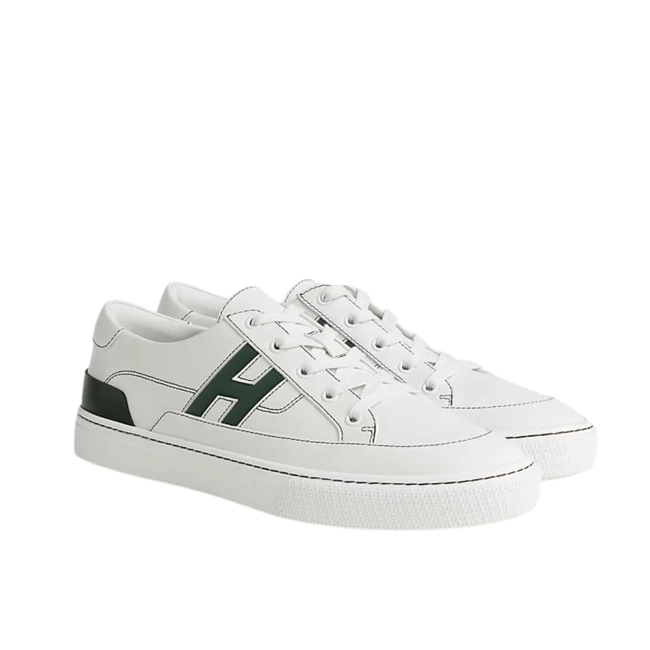 Hermes Deep Sneaker Blanc And Vert Bouteille H251837ZH14400