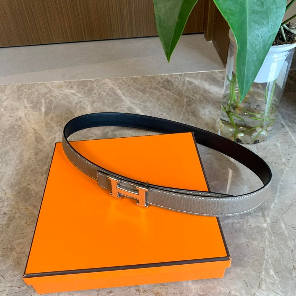Hermes Mini H Belt Buckle And Reversible Leather Strap Silver Grey