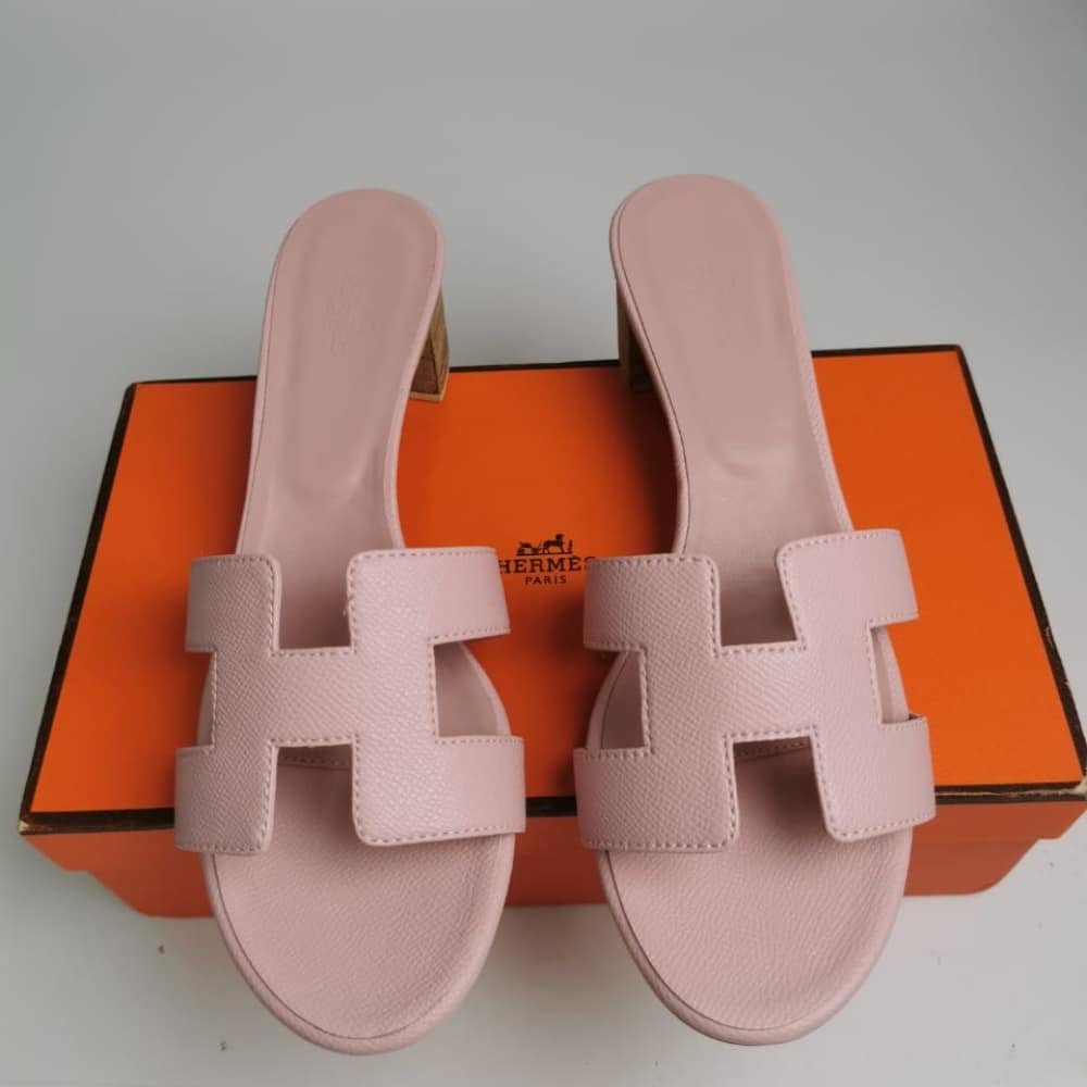 The Hermès Oasis Sandals in rose pale embody timeless femininity with the maison’s iconic “H” silhouette elevated by a graceful block heel. Radiating elegance and refined comfort, they transform every step into a statement of prestige and modern luxury.
