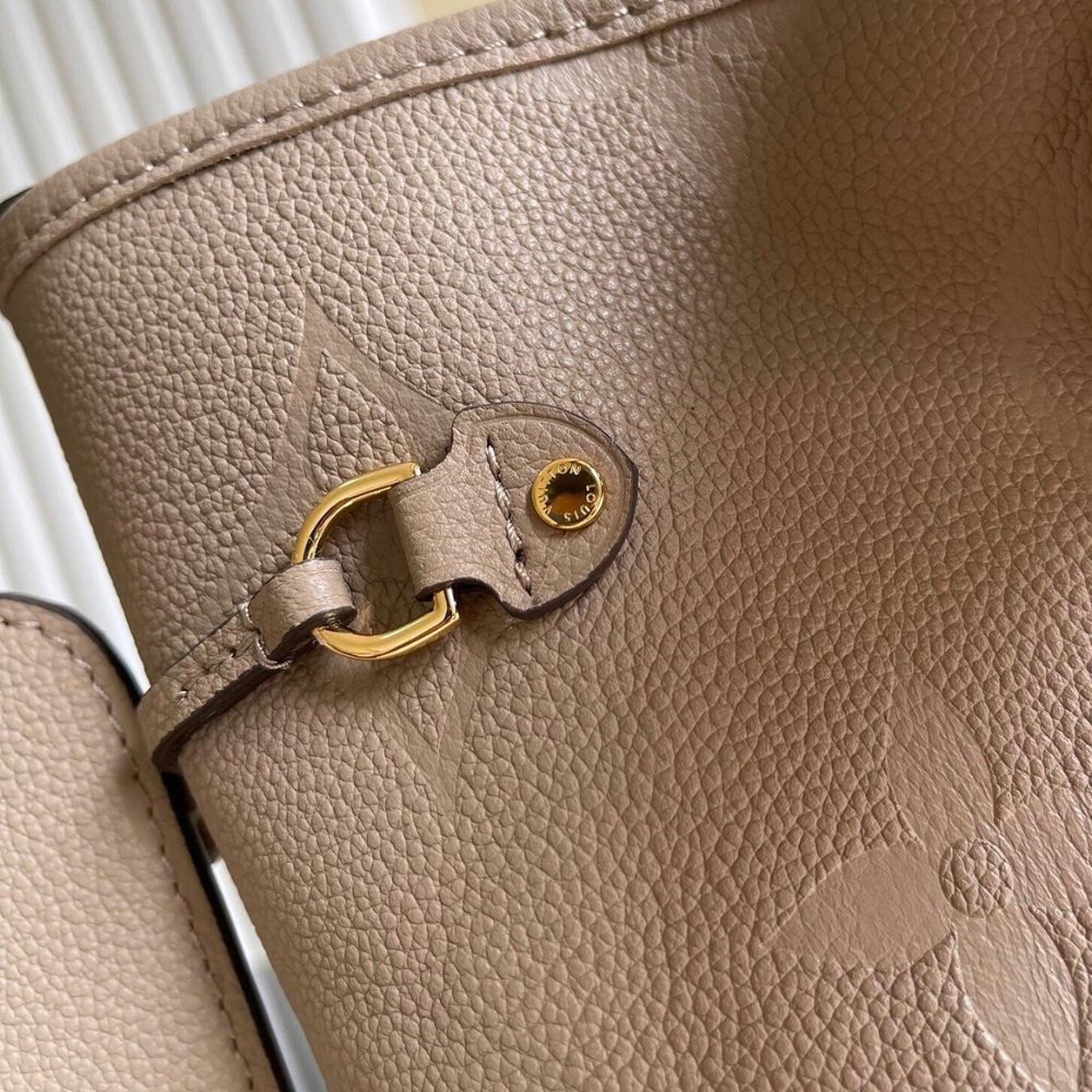 The essential Neverfull MM tote now comes in embossed Monogram Empreinte leather. Its generous dimensions make this bag ideal for everyday use while the long shoulder handles and supple leather mean it’s comfortable to carry. With the side laces cinched, this roomy carryall becomes a stylish city bag. It can be worn over the shoulder or on the elbow.