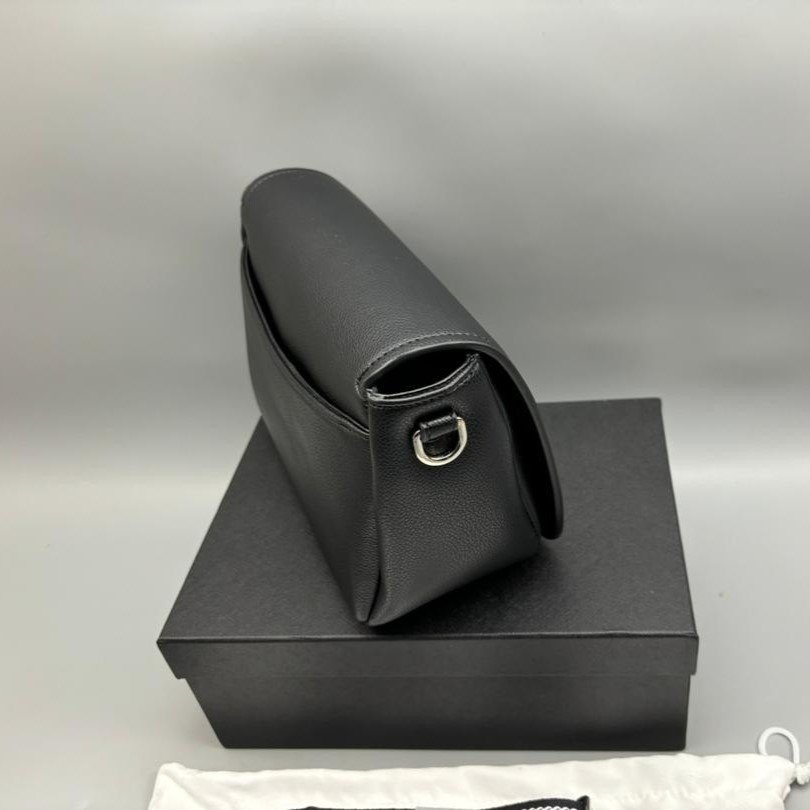 This small shoulder bag with soft pleated sides and a modern silhouette is decorated with the lettering logo on the flap. The adjustable woven tape shoulder strap decorated with the embroidered logo in a contrasting color makes the bag versatile and wearable as a crossbody or shoulder bag.