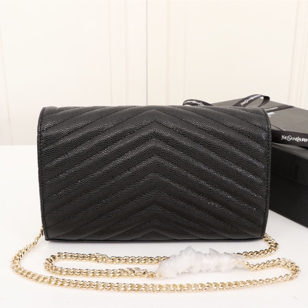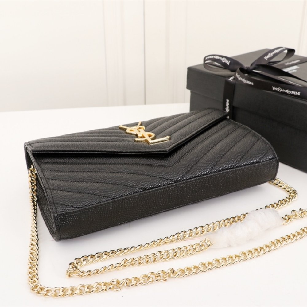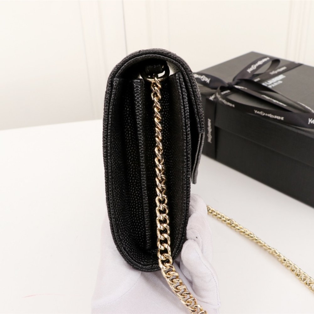 Saint Laurent Cassandre Matelassé Chain Wallet In Grain De Poudre Embossed Black Gold 22Cm 377828BOW011000